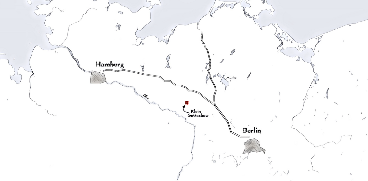 Unsere Spirituosen-Manufaktur hat ihre Heimat in der Prignitz, einer Landschaft im Nordwesten der Mark Brandenburg, gelegen an der Elbe, auf halber Strecke zwischen Berlin und Hamburg im Ort Klein Gottschow. Hier, in diesem am dünnsten besiedelten Landstrich Deutschlands, haben auf dem Hof der Familie Wacker ganz wunderbare Spirituosen ihr zu Hause.