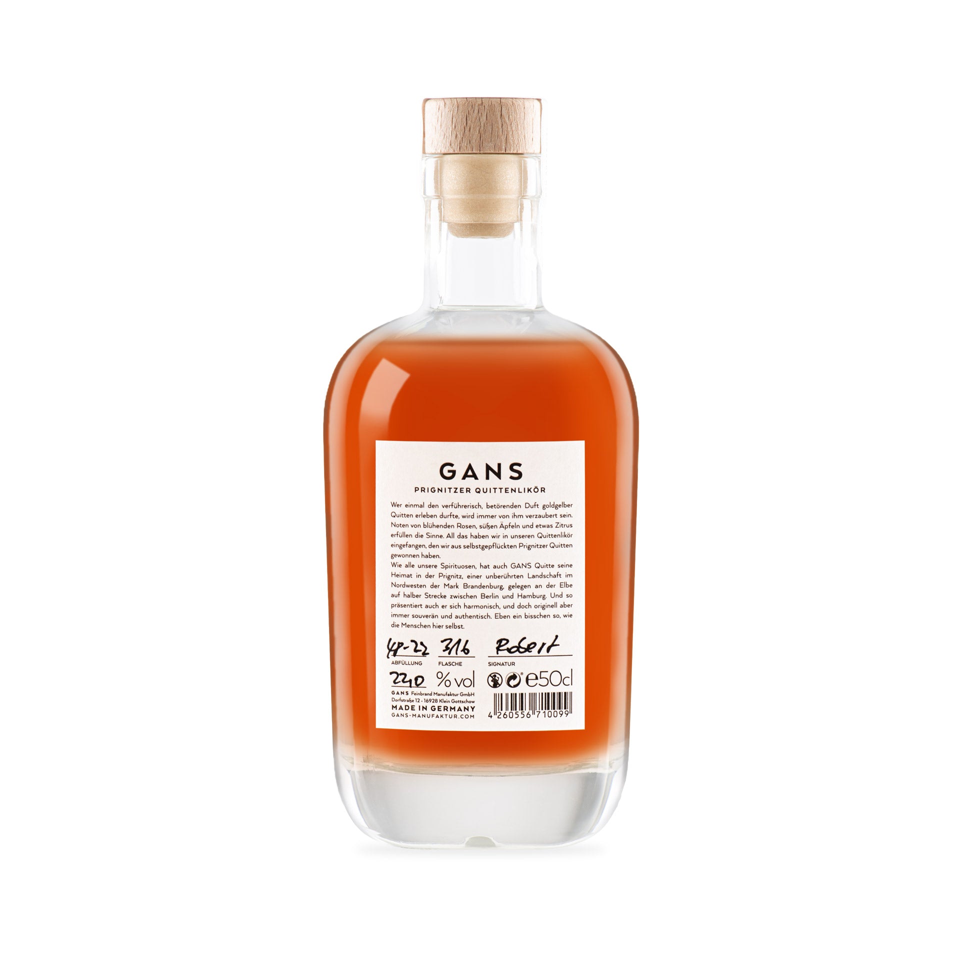 Der GANS Quittenlikör ist eine Liebeserklärung an den betörenden Duft und die facettenreichen Aromen goldgelber Quitten, wie sie nur in der Prignitz gedeihen. Mit Sorgfalt aus handgepflückten Quitten hergestellt, vereint dieser Likör die herrlichen Quittennoten, die feine Süße reifer Äpfel, die florale Eleganz blühender Rosen und einen Hauch erfrischender Zitrone.