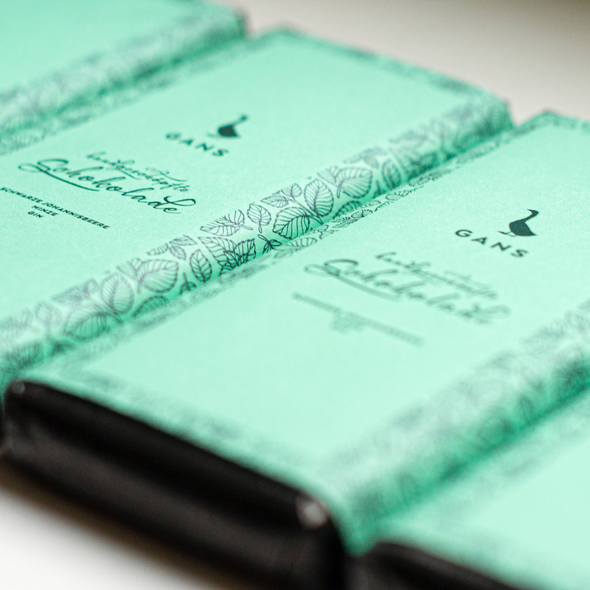 Im Inneren dieser delikaten Schokolade verbirgt sich eine zartschmelzende Creme aus schwarzer Johannisbeere, Minze und unserem charakteristischen GANS Gin. Die fruchtige Note der Johannisbeere trifft auf die Frische der Minze, während der GANS Gin mit seiner fruchtig-beerigen Wacholdernote für das besondere Etwas sorgt.